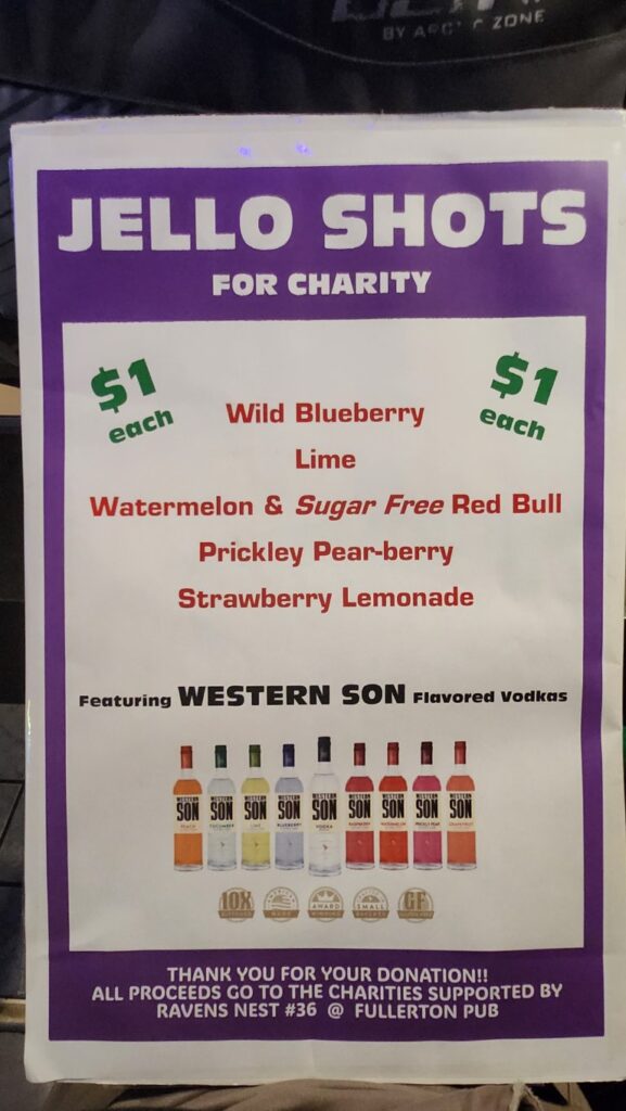 Thank you Fullerton Pub for your support of our charities.